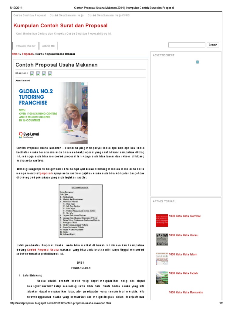 Contoh Proposal Usaha Makanan / (DOC) CONTOH PROPOSAL USAHA MAKANAN [ 1 | fajar fotocopy ... : Tidak heran jika banyak pelaku usaha yang melirik bisnis ini sebagai salah satu peluang yang dianggap cukup menjanjikan.